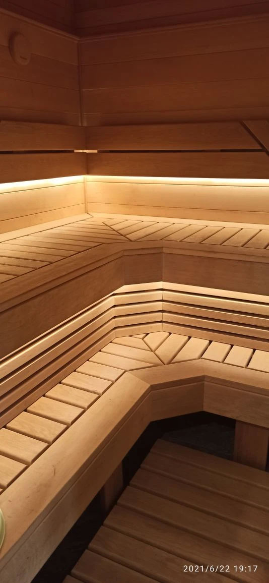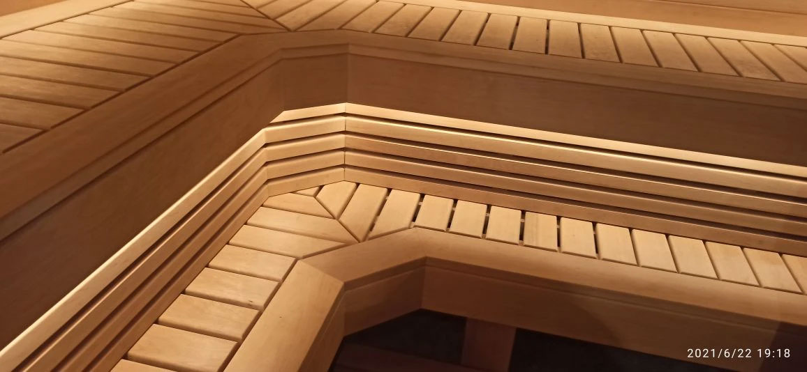 - Правильная древесина. Используем только доски камерной сушки из пород, устойчивых к высоким температурам и влаге. Такой материал не деформируется и не обжигает кожу.