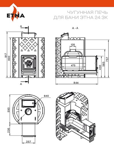 —Чугунная печь для бани ЭТНА 24 (ДТ-4) Закрытая каменка