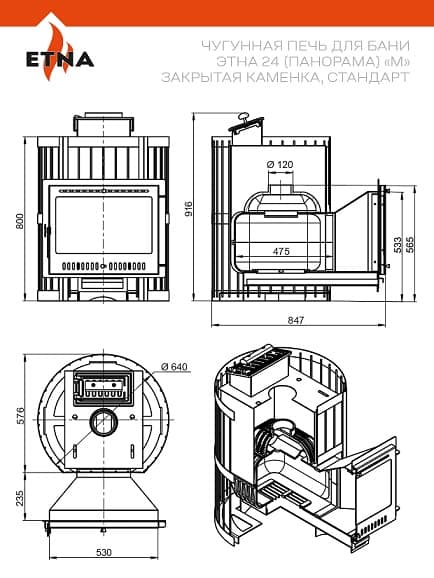 - Диаметр дымохода: 120 мм