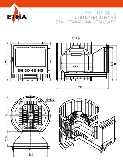 Чугунная печь для бани ЭТНА Стандарт 24 (Панорама) "М"