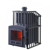 Печь для бани GROZA 24 (П)2 Ураган - расширенный комплект печи в сетке. Максимально приближенный вариант печи для режимов русской парной, имеющий непосредственно закрытую чугунным коробом каменку, дверцу для пара с ручкой из бука, увеличенную до 50 см чугунную стартовую трубу. Печь легко модернизируется до полноценной печи предназначенной для Русской бани путем замены стальной сетки на каменную облицовку без демонтажа дымохода.