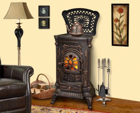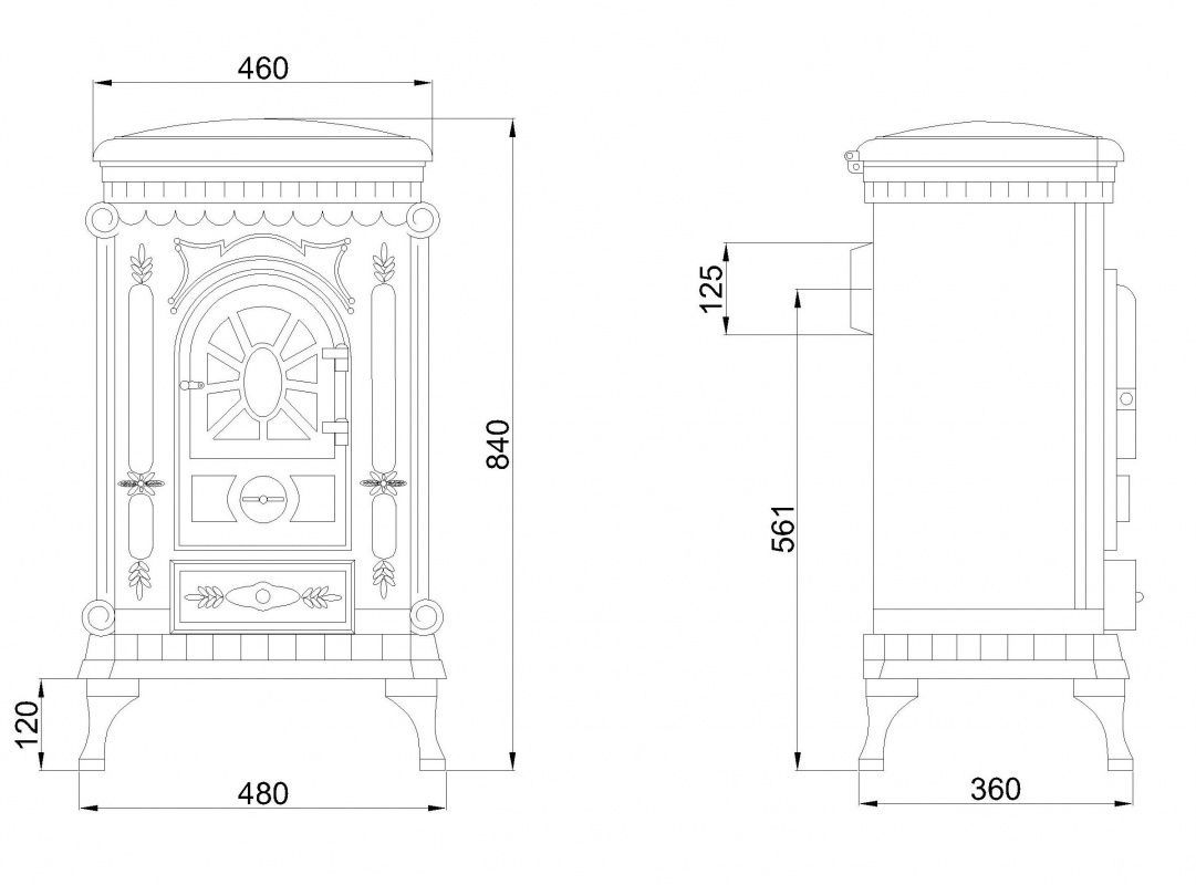 Представлена классическая печь камина Eurokom AMBRA для загородного дома и дачи, все детали которой полностью изготовлены из чугуна. Эту печь отличает очень оригинальная форма дверцы. Режим медленного горения позволяет углям дольше тлеть, тем самым поддерживая постоянную температуру внутри печи и помещения- значительно снижает расход дров- значительно увеличивает КПД печи- позволяет реже производить закладку дров (одной закладки дров хватает до 10 часов медленного горения).