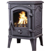 Представлена отопительная классическая чугунная печь с большим обзором живого огня. Она имеет небольшие размеры, однако способна отопить дом объёмом 200 куб. м. Двойные стенки корпуса увеличивают срок эксплуатации печи и делают более эффективным прогрев воздуха.
