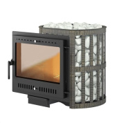 Банная чугунная печь Легенда Ковка 16 Панорама "М" укомплектована металлической герметичной дверцей Везувий Панорама "М". Конвекционно-вентилируемый кожух "Ковка" изготовлен из металлической текстурированной полосы покрашенной термостойкой краской и покрытая патиной «Бронза».