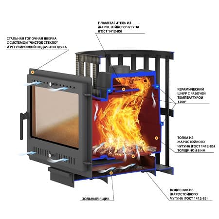 - Материал топки: Жаростойкий чугун (ГОСТ 1412-85)