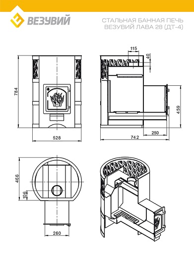 Стальная банная печь серии Лава усовершенствованной конструкции работает на дровах и предназначена для нагрева пространства парной и получения пара. Печь ВЕЗУВИЙ Лава 28 (ДТ-4) 2022 рассчитана на объем парной 14-30 кубометров.