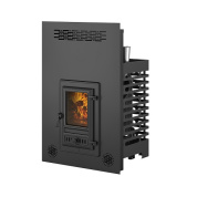 Фронтальный экран устанавливается на топочный тоннель сверху, позволяет на своей основе собрать стену между парной и предбанником из кирпича или дерева.