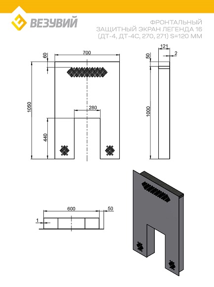 Экран полностью совместим с печью Легенда 16 в модификациях с дверками ДТ-4, ДТ-4С, 270, 271. Размеры портала и арки точно соответствуют печам указанных моделей и не требуют предварительной подгонки по месту.