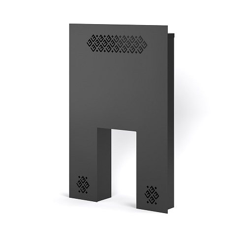 Выполненный из стали толщиной 1-2 миллиметра фронтальный защитный экран выполняет функцию эстетического обрамления топочного тоннеля печи и одновременно защищает смежные с печью поверхности от воздействия повышенных температур.