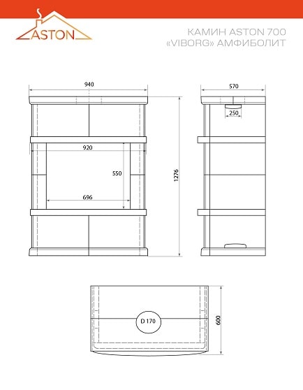 Топка Астон 700 внутри облицовки размещается на подставке. Топка, подставка и облицовка отлично походят друг к другу и не требуют дополнительной подгонки.