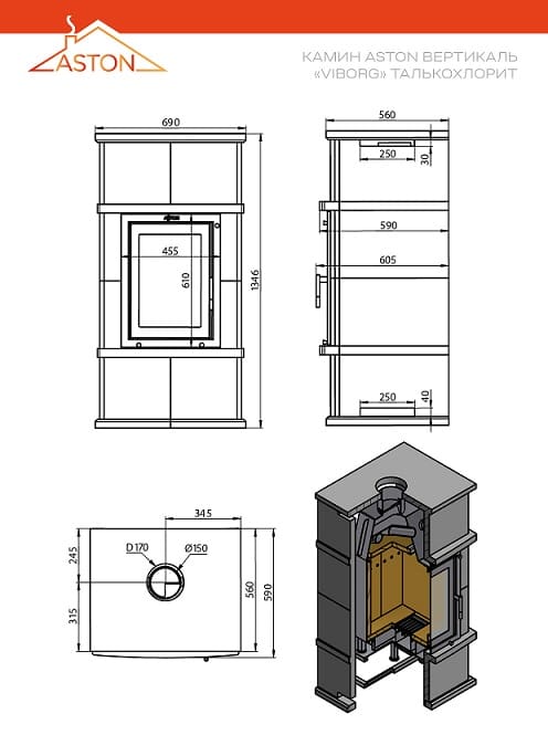 —Камин ASTON Вертикаль «VYBORG» Н-1346 Талькохлорит