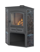 Печь-каминв ключает в свою конструкцию топочную камеру с поддувалом и дымосборником, а также дополнительные боковые стенки, облицованные керамическими плитками чёрного или бежевого цвета. При этом топка располагается в верхней части печи-камина, а нижняя свободная часть может быть использована в качестве дровника.