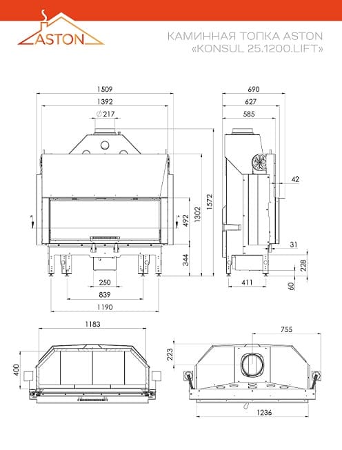 Каминные топки ASTON KONSUL – это максимально оптимизированный процесс эксплуатации. Топки серии KONSUL генерируют оптимальное количество тепла при экономичном расходе древесины. За это отвечают инновационные решения, в виде керамобетонной футеровки с термостойкостью до 1000°C, концентрирующей тепло, а также специальные пламегасители, повышающие температуру внутри камеры. На производительность каминной топки влияет также шестиугольная камера сгорания, где повышается температура за счёт уменьшения кубатуры. Таким образом, легко получить оптимальное тепло в доме без риска перегрева помещения.