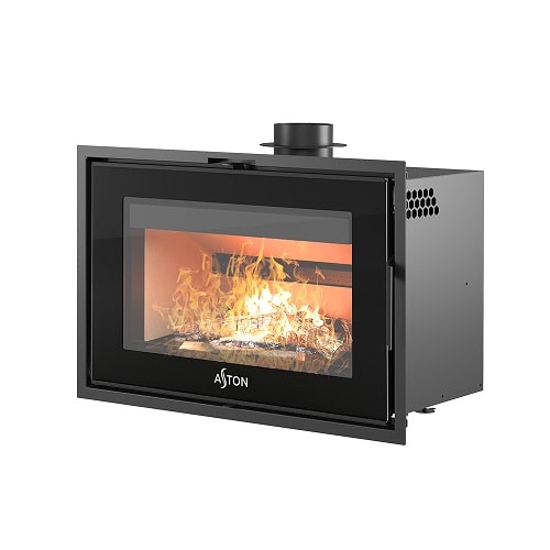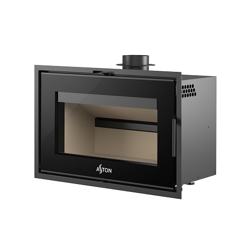 Стальной кожух каминной топки отстоит от корпуса на 3-4 сантиметра, что обеспечивает отличные конвекционные свойства теплового агрегата. Холодный воздух захватывается в щель снизу под дверью и, нагреваясь, выходит в верхней части боковых стенок кожуха. Таким образом обеспечивается быстрый прогрев помещения или объёма, расположенного под облицовкой камина.