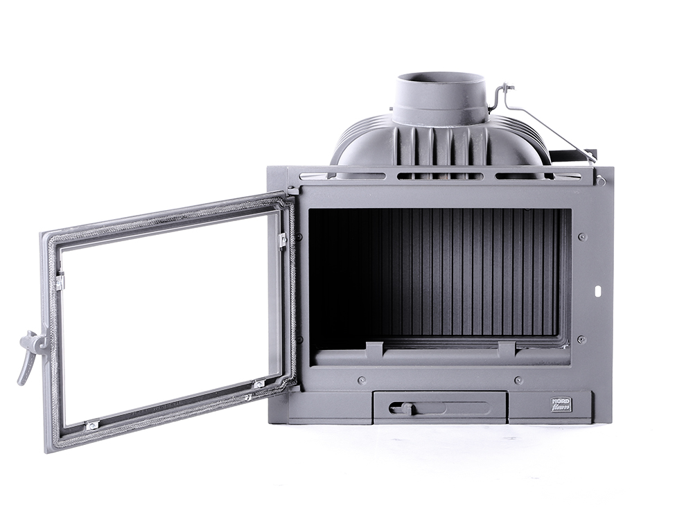 Оборудована встроенной шиберной заслонкой, зольным ящиком c регулировкой подачи воздуха в топку, двойной задней стенкой и дефлектором. Рекомендуем приобретать данную модель для обогрева помещения площадью от 50 кв. метров. Умеренный вес (85 кг) и компактные размеры позволяют устанавливать каминную топку Nordflam Corno в доме на любом фундаменте.