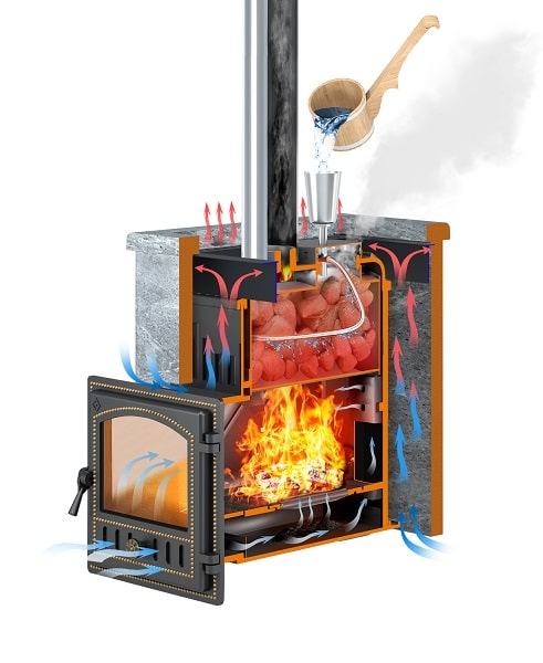 Талькохлорит – экологически чистый натуральный камень. Он не выделяет вредных веществ при нагревании. Талькохлорит быстро нагревается и хорошо переносит перепады температуры, а также отличается высокой теплоемкостью, поэтому, даже после окончания топки печь или камин с такой облицовкой, продолжительное время продолжает «отдавать» тепло, обогревая помещение. Это отличный материал для создания теплоаккумулирующих каминов. Кроме того, облицовка из талькохлорита придаст утонченную роскошь отопительному прибору, позволяя гармонично вписаться в интерьер помещения