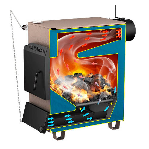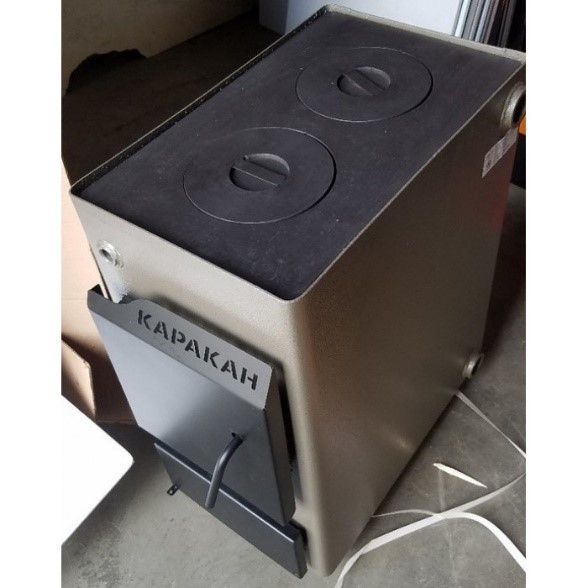 Корпус котла сварной (из стали толщиной 3 мм) имеет рабочее давление в системе отопления - 3 атм. Котлы Каракан нетребовательны к топливу – можно использовать дрова, каменный и бурый уголь, торф, брикеты, а так же электричество (при установке блока ТЭН), или сжиженный и природный газ (при установке газовой горелки в модели без варочной поверхности).