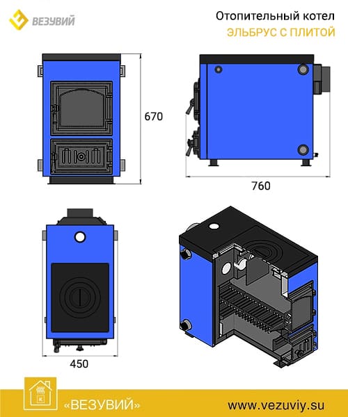 Отопительный водогрейный котёл «Эльбрус с плитой» предназначен для теплоснабжения индивидуальных жилых домов и зданий коммунально-бытового назначения, оборудованных системами водяного отопления с естественной или принудительной циркуляцией, в открытых и закрытых системах отопления.