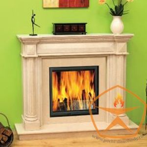 Портал из натурального мрамора Crema Marfil или Galala Beige. Размеры основания (ВхШхГ): 1300х1550х350. Максимальные внутренние размеры под топку: 850х900 мм.