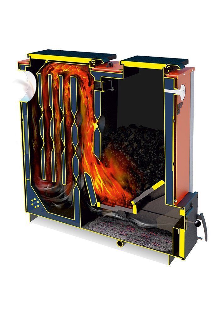 Для поддержания горения котел оснащен подвижной колосниковой решеткой из чугуна, с помощью которой в рабочем режиме осуществляется встряхивание углей, а в аварийном режиме — сбрасывание топлива в большой зольный ящик. Отличительная черта котлов всех линеек серии «Куппер» — универсальность. Она заключается в возможности «перевода» котлов на другие виды топлива (газ, пеллеты) при установке соответствующих горелок. При необходимости он может работать на дровах и топливных брикетах.