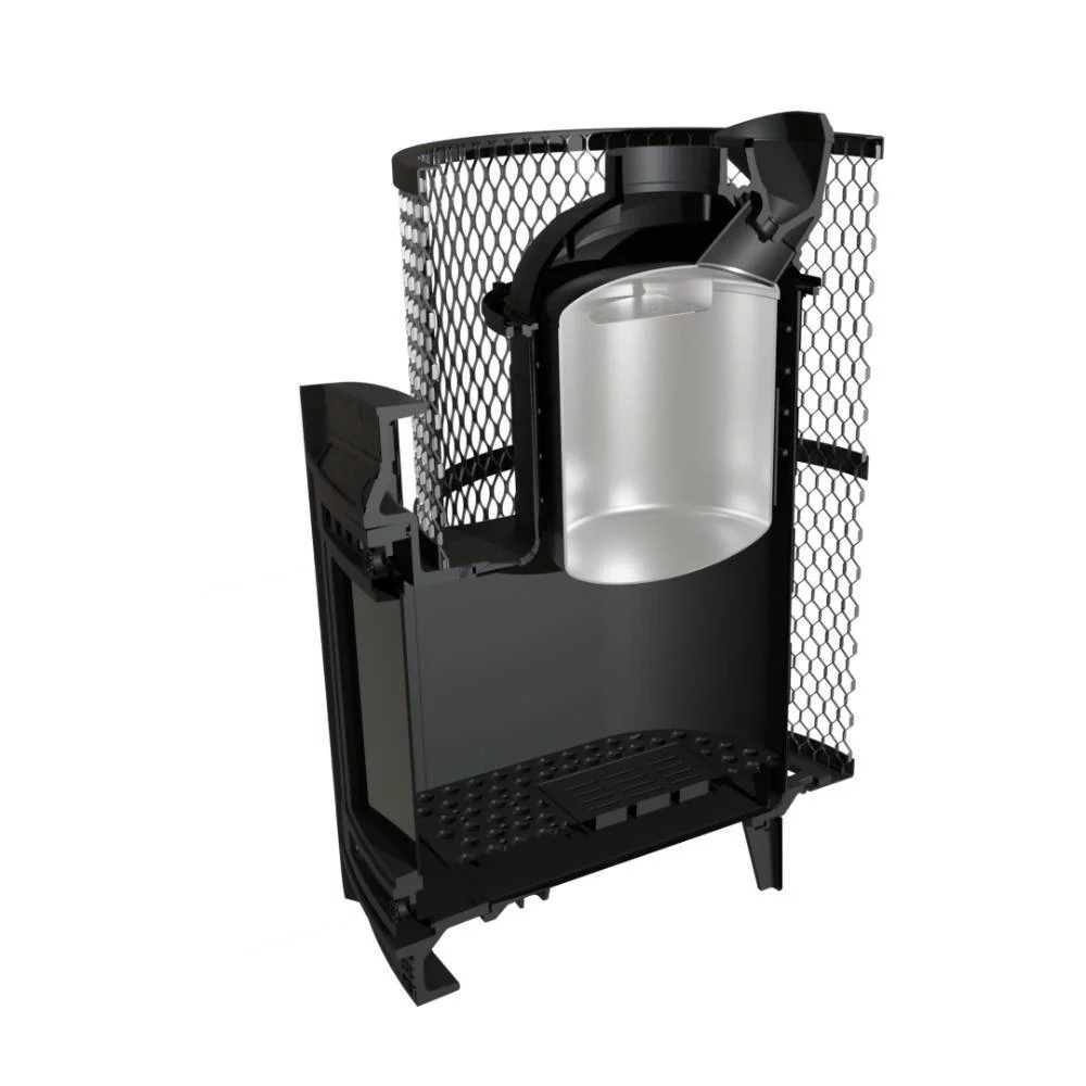 Внутренняя каменка изготовлена из нержавеющей стали и оснащена паровой пушкой.