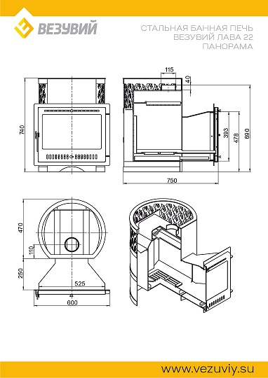 Стальная банная печь серии Лава усовершенствованной конструкции работает на дровах и предназначена для нагрева пространства парной и получения пара. Печь Везувий Лава 22 Панорама рассчитана на объем парной 12-24 кубометров.