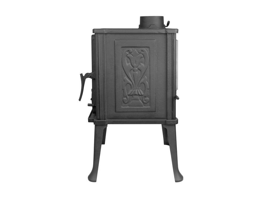 Печь буржуйка Iskra изготовлена из высококачественного чугуна и предназначена для обогрева закрытых помещений. На боковых поверхностях выгравированы красивые орнаменты. Длинные элегантные ножки позволяют устанавливать ее в любом месте Вашего дома. Эта малогабаритная печка способна эффективно отапливать до 120 м³, имеет КПД в 78%. Просторный проем топочной дверцы способствует удобной загрузке дров в топку, а благодаря большому термостойкому стеклу открывается замечательный вид на огонь. Модель станет отличным дополнением к Вашему интерьеру.