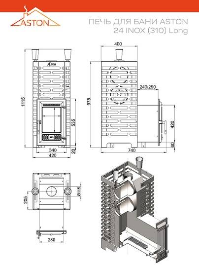 Печь ASTON из нержавеющий стали марки AISI 430 толщиной 4мм устойчива к окислению и прогару.