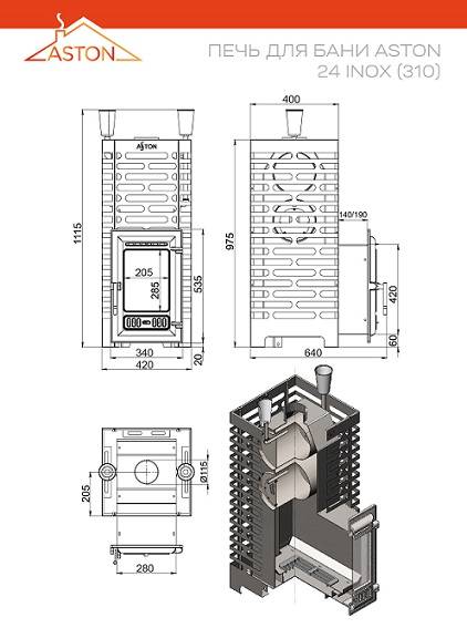 Печь для бани ASTON 24 INOX (310)