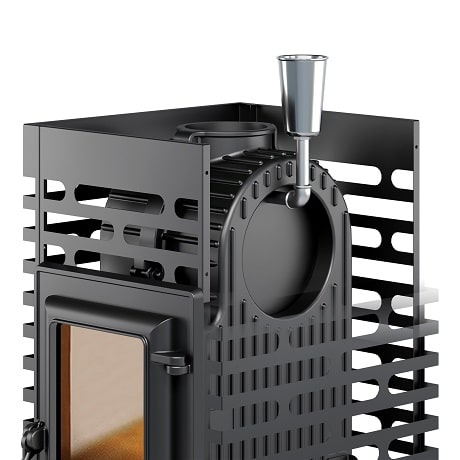 - Закрытая каменка из нержавейки, размещённая в самом горячем месте печи.