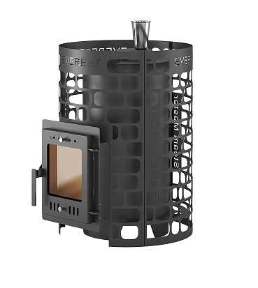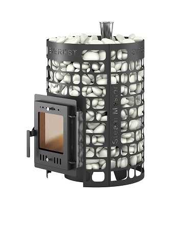 Внешний тепловой контур образован открытой каменкой в виде цилиндрической сетки, вмещающей в себя 100 килограммов камней. Сетка сделана из стали, в новом минималистичном дизайне EVEREST.