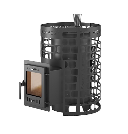 Внешний тепловой контур образован открытой каменкой в виде цилиндрической сетки, вмещающей в себя 100 килограммов камней. Сетка сделана из стали, в новом минималистичном дизайне EVEREST.
