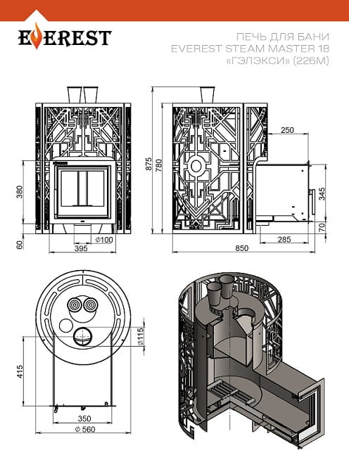 - Материал закрытой каменки: нержавеющая сталь (AISI 430)