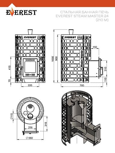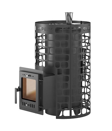 Внешний тепловой контур образован открытой каменкой в виде цилиндрической сетки, вмещающей в себя 140 килограммов камней. Сетка сделана из стали, в новом минималистичном дизайне EVEREST.