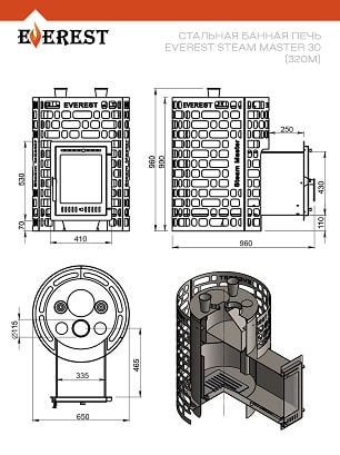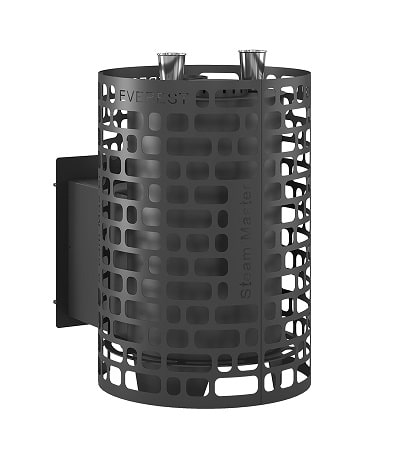 Внешний тепловой контур образован открытой каменкой в виде цилиндрической сетки, вмещающей в себя 140 килограммов камней. Сетка сделана из стали, в новом минималистичном дизайне EVEREST.
