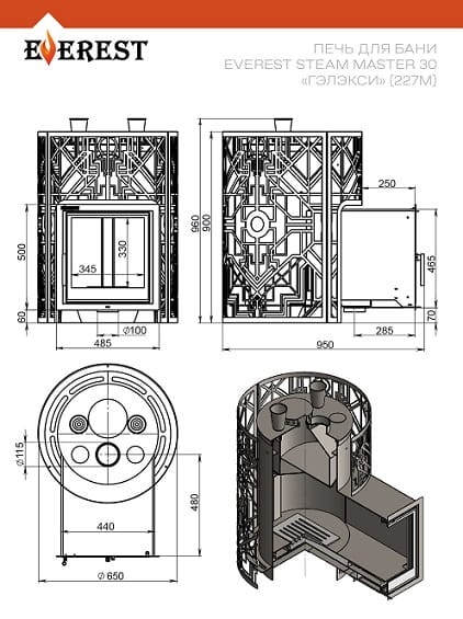 - Диаметр дымохода: 115 мм