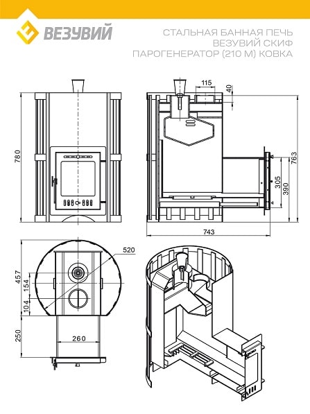 Стальная банная печь ВЕЗУВИЙ Скиф Парогенератор Ковка (210) "М" предназначена для прогрева парного помещения в бане и поддержания необходимой температуры во время парения. Печь СКИФ оборудована открытой каменкой, закладываемой камнями для бани (приобретаются отдельно).