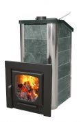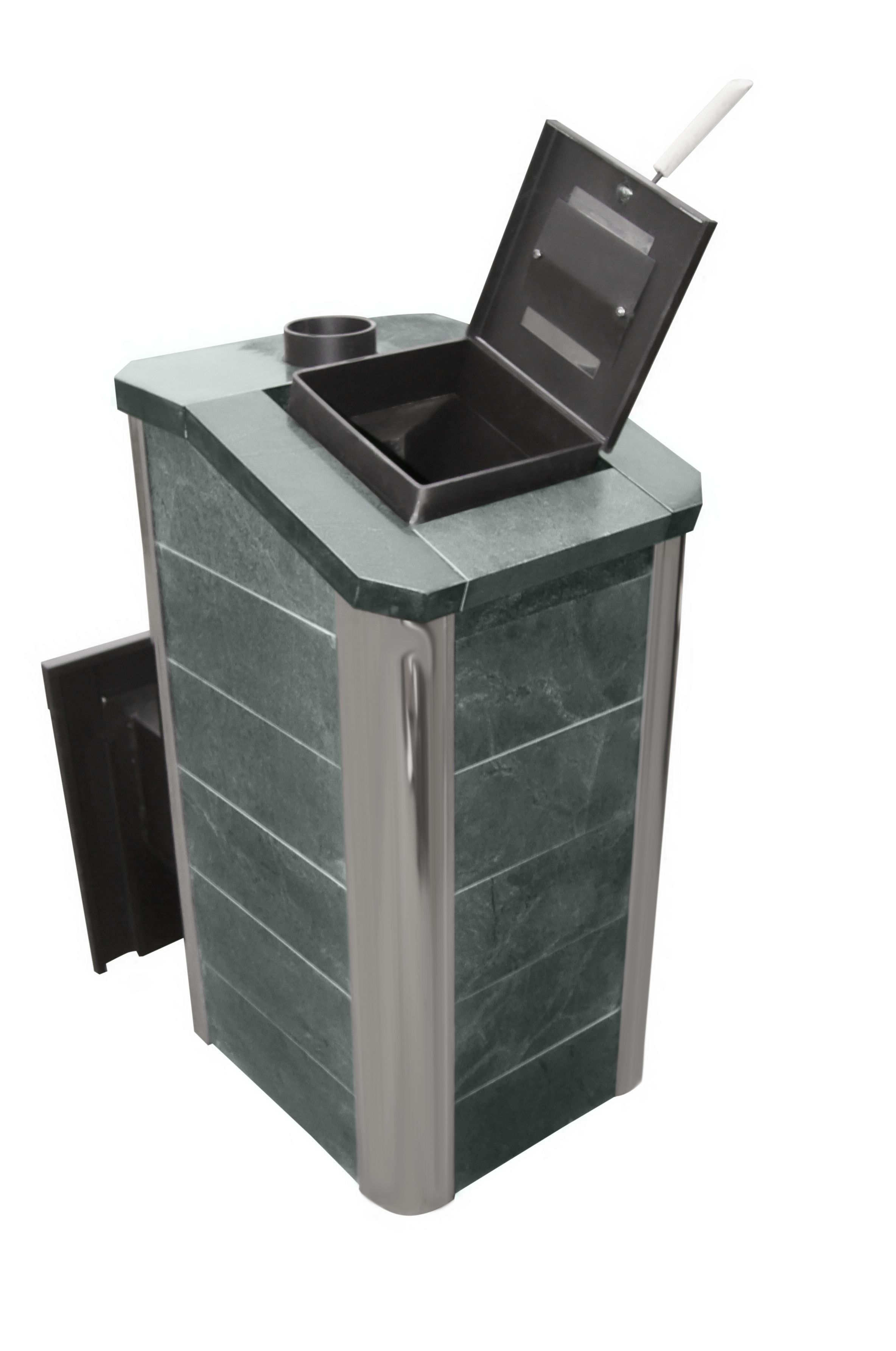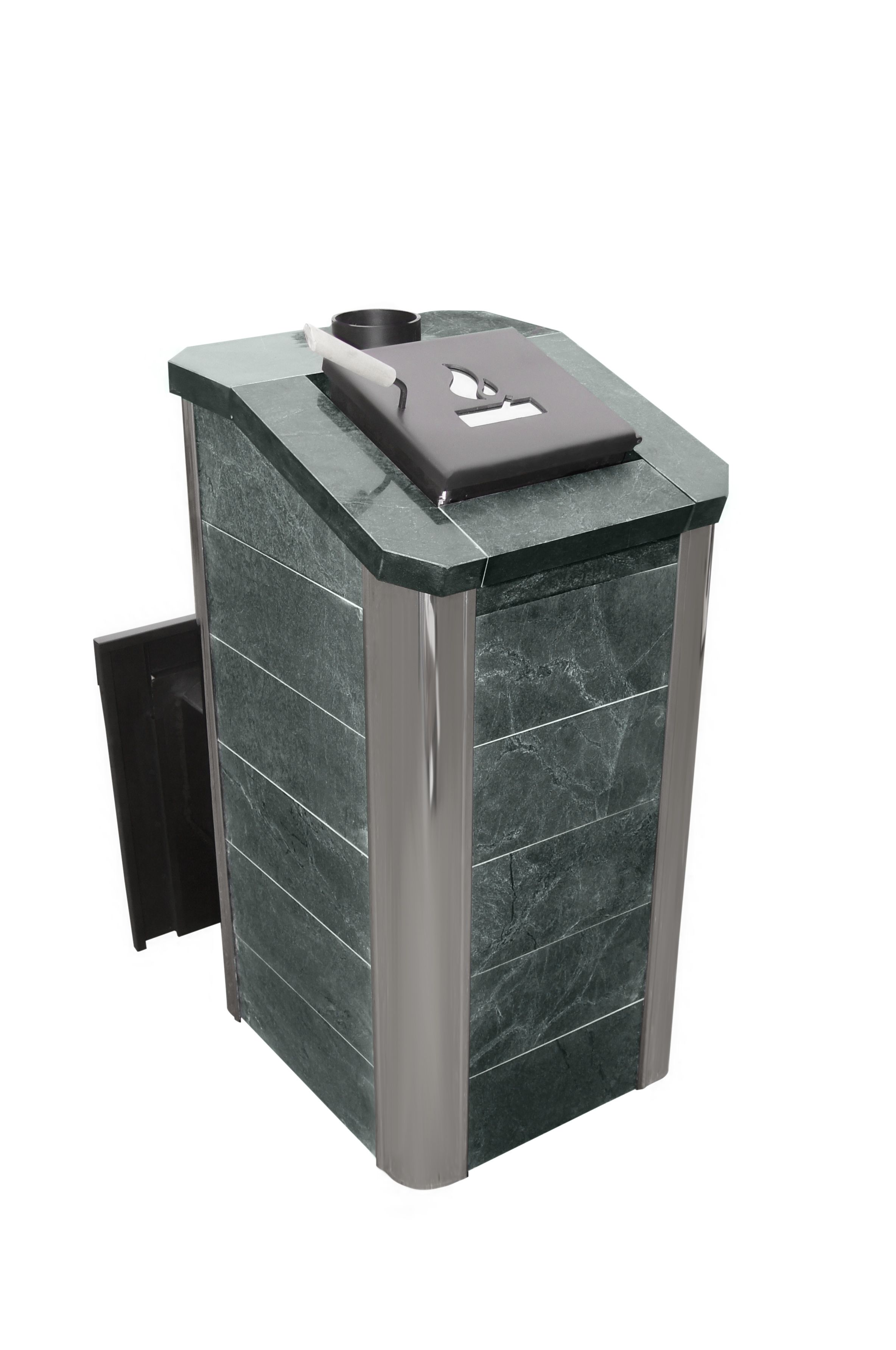Камень в данной модели закладывается в специальный карман с дверцей, находящийся внутри печи. При топке, камень в данной модели нагревается до более высокой температуры, в отличии от моделей с открытой каменкой. Такая модификация дает возможность получить мягкий мелкодисперсный пар.