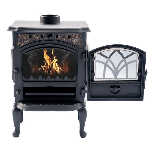 - Чугунный отбойник пламени в верхней части топочной камеры для повышения КПД