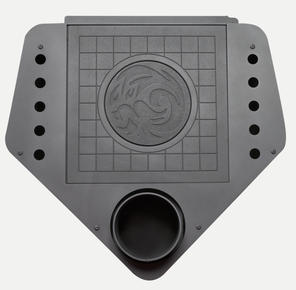 Конструкция топки выполнена из футерованной стали толщиной 6 мм, оснащена чугунным колосником и облицована шамотным кирпичом. Толщина стального контура камина составляет 3 мм. Эффективный конвективный контур обеспечивает качественный теплоотвод.