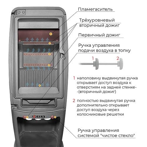 - Выход дымохода: Сверху/Сзади