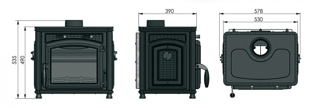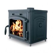 Это компактная дровяная печь-камин из высокопрочного чугуна, выдающая мощность в 13 кВт. Для максимального удобства установки предусмотрена возможность подсоединения дымохода сверху и сзади.