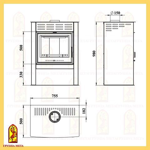 Комплект дымохода 150/230 который подходит для этой печи всегда имеется у нас в наличии.