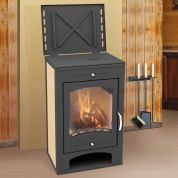 При высоте 89 см, ширина камина составляет 56 см, а глубина - 42 см. Поэтому для отопления используются дровяные поленья длиной до 40 см. Благодаря внедренной системе дожига вторичных газов печь демонстрирует высокую мощность теплообменника и конвектора. Объем расположенного с задней стороны печи съемного теплообменника - 4 л. Мощность водяного контура - 5 кВт. Это позволяет создать эффективную водяную отопительную систему на основе радиаторов. Сам же печной котел будет отапливать помещение счет конвекции. Средний объем теплоносителя составляет от 40 до 130 л и зависит от площади обогрева.