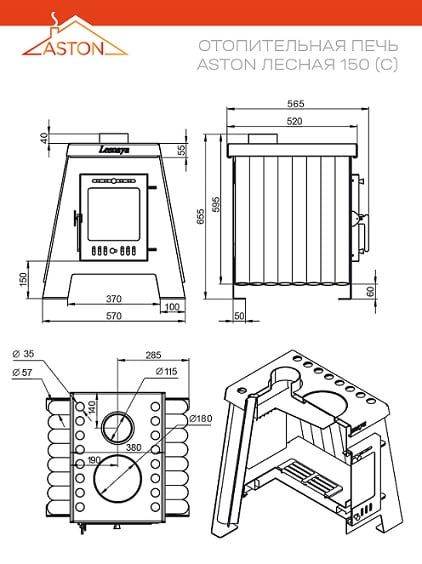 Астон Лесная — отопительная печь конвекционного типа, изготовленная из особо прочной котловой стали. Печь предназначена для обогрева помещений объёмом до 150 кубических метров.