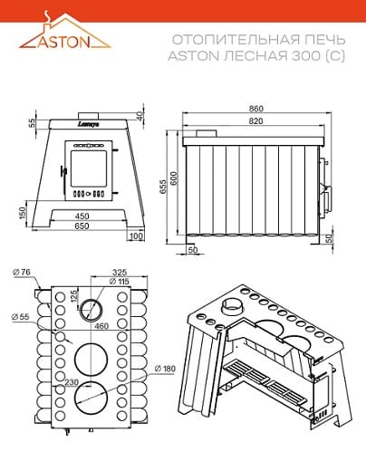 Дверь изготовлена из стали толщиной 2-3 мм. Она оснащена нижней системой подачи воздуха в поддувальное пространство. С помощью заслонки двери можно регулировать интенсивность горения дров в топке.