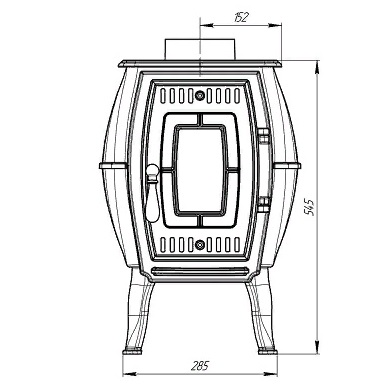 Дымоходную трубу к Бахтинке можно подключать только сверху. При ее отсоединении печка превращается в компактное устройство, которое удобно брать с собой в поездки. При ширине в 375 мм, печь легко помещается в багажнике.