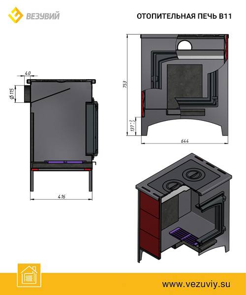 Отопительная печь Везувий В11 способна отапливать помещения до 170 м3.