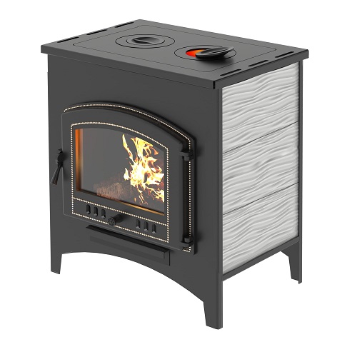 Отопительная печь «Везувий» В11 предназначена для установки в различных хозяйственных и жилых помещениях. Печь изготовлена из специальной конструкционной стали. Верхняя чугунная плита может использоваться для приготовления пищи. Печь укомплектована чугунным колосником и чугунной герметичной дверцей Везувий (224) с жаропрочным стеклом. Печь облицована Керамическими вставками.