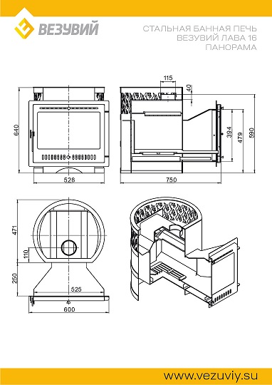 Стальная банная печь серии Лава усовершенствованной конструкции работает на дровах и предназначена для нагрева пространства парной и получения пара. Печь ВЕЗУВИЙ Лава 16 Панорама 2022 рассчитана на объем парной 8-18 кубометров.
